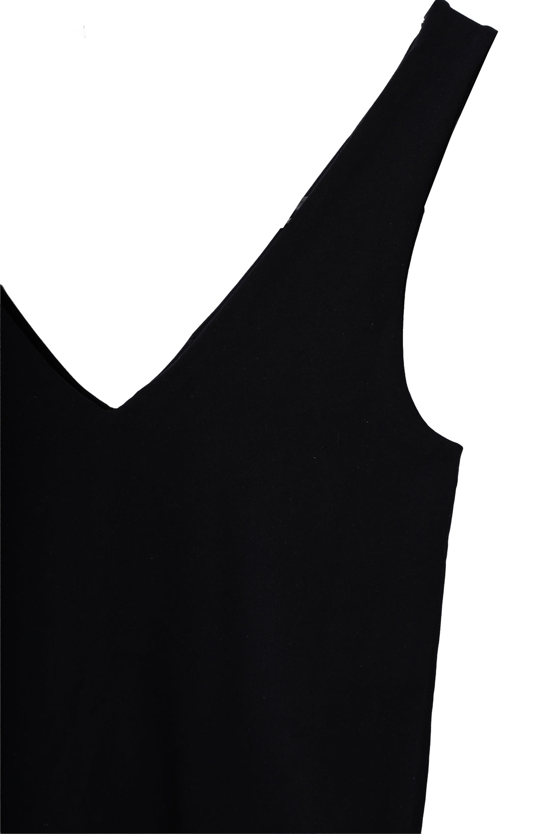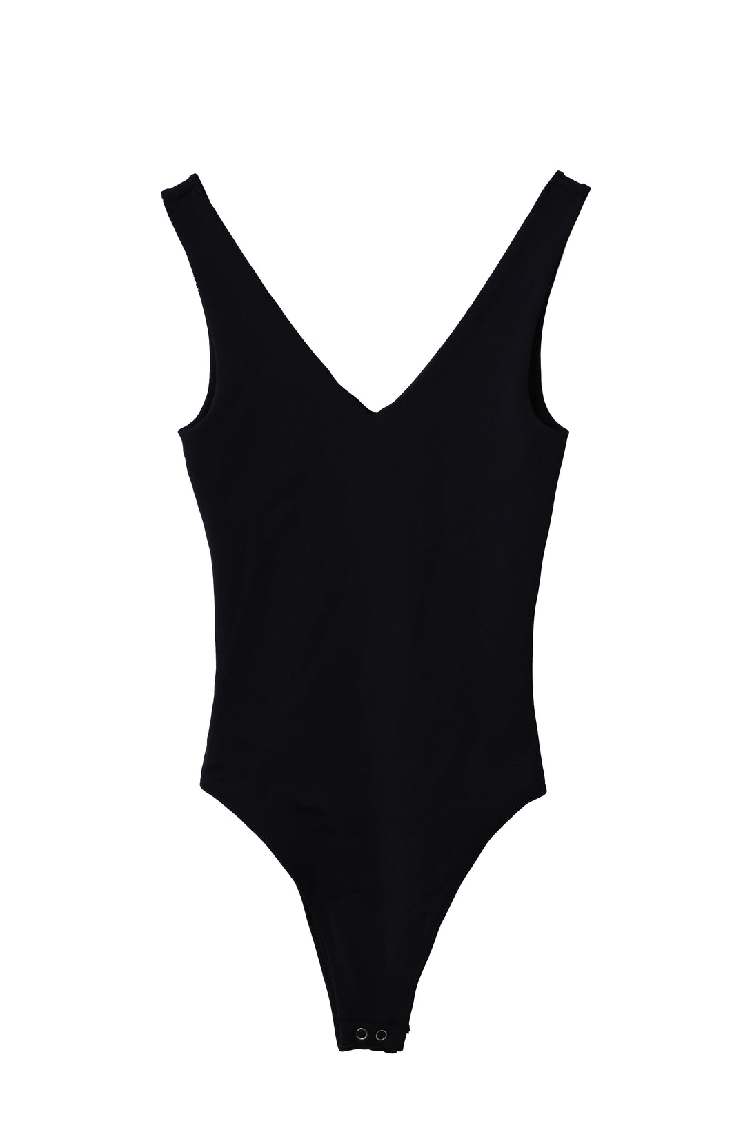 Un esencial sofisticado. Este body negro de escote profundo en V redefine la base del armario con una silueta pulida y minimalista. Su diseño limpio se ajusta delicadamente al cuerpo, creando un acabado impecable que realza la figura y permite múltiples posibilidades de estilo. Un básico atemporal con la actitud moderna de SETA.
