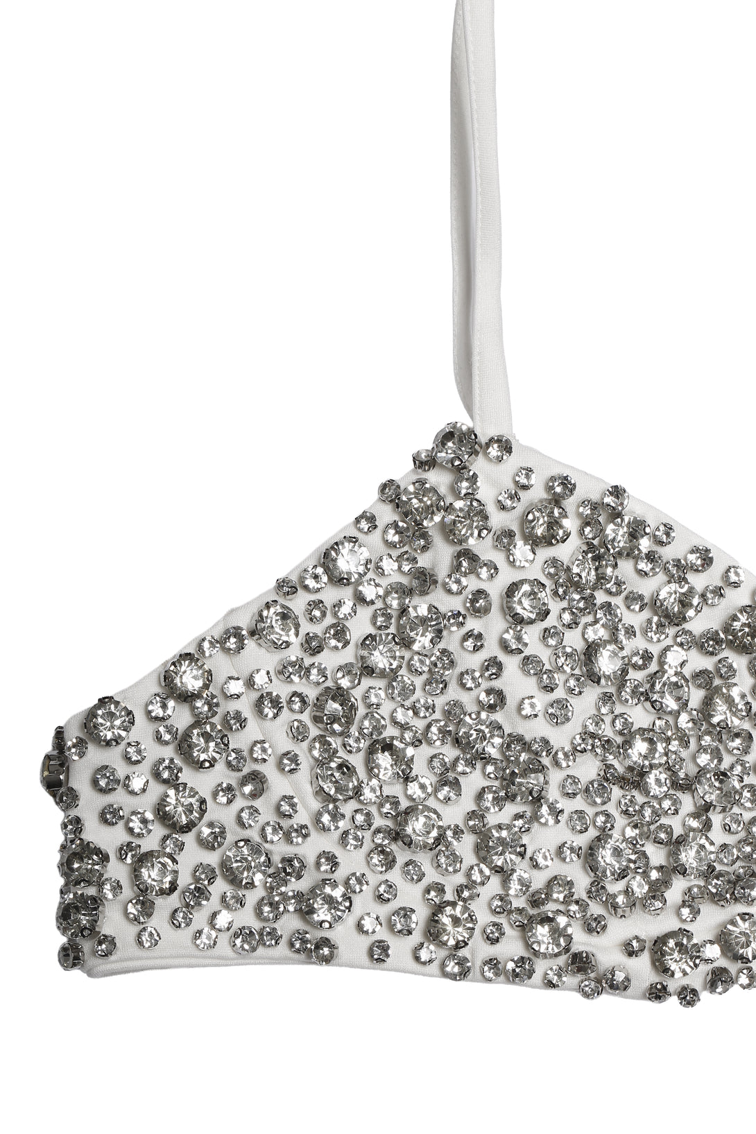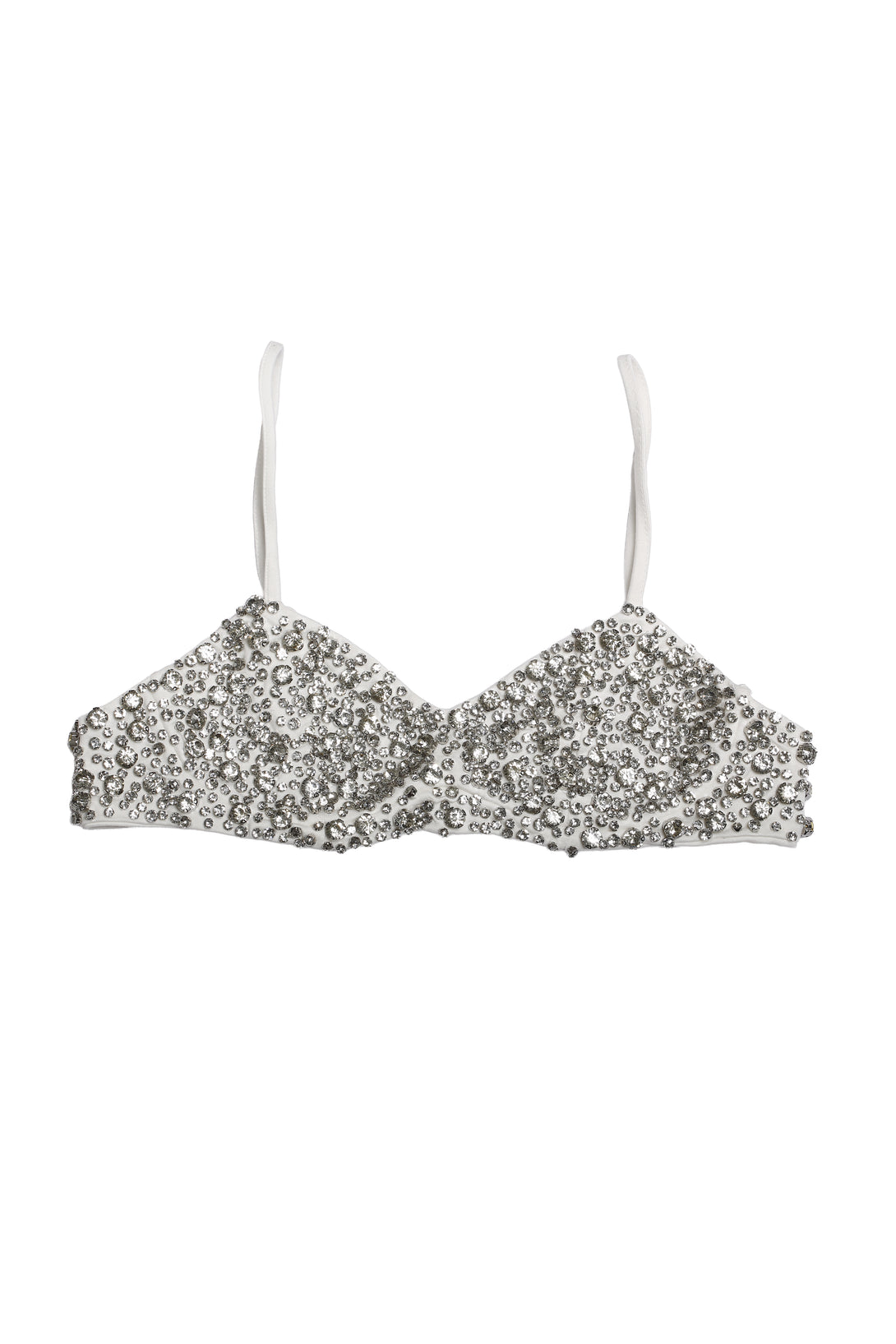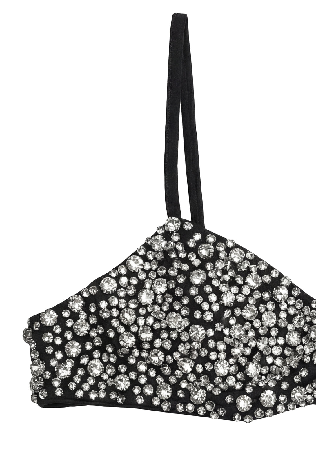 Un top sofisticado y deslumbrante, completamente recamado en cristales que aportan un brillo impactante y elegante. Su confección detallada y su silueta moderna lo convierten en una pieza protagonista, perfecta para noches donde la sofisticación y el brillo son esenciales.
