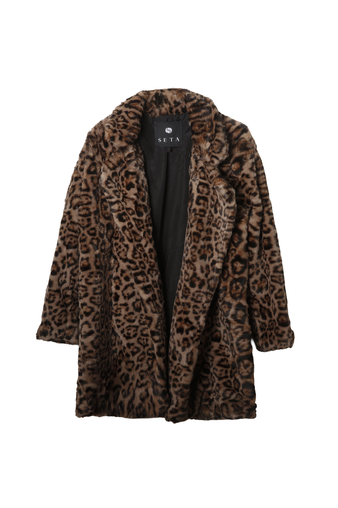 Un abrigo de impacto inspirado en el lujo atemporal del animal print. Su textura abrigada y suave aporta confort sin sacrificar sofisticación. El estampado leopardo, clásico y audaz, convierte esta pieza en un statement indispensable para elevar cualquier atuendo con fuerza y personalidad, manteniendo la esencia chic característica de SETA.