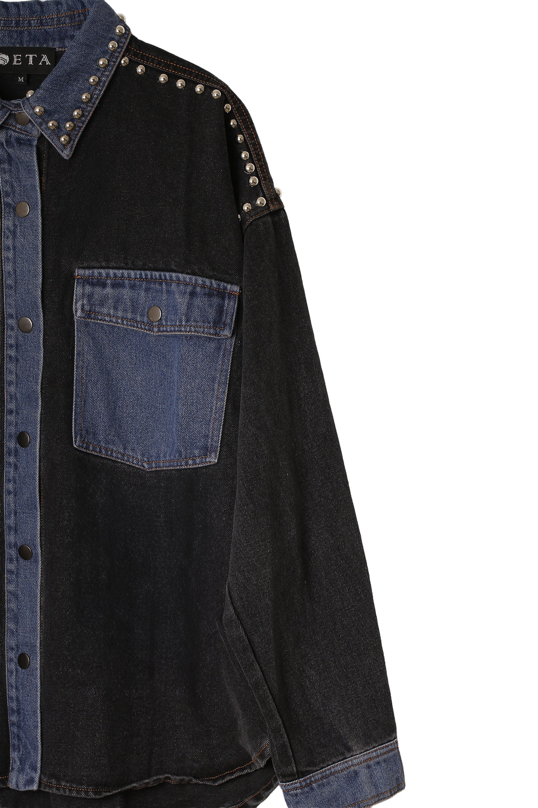 Nuestra Nightfall Jacket fusiona el carácter del denim con una actitud rebelde y refinada. Su diseño en mezclilla bicolor y detalles en taches metálicos crea un contraste poderoso que redefine lo clásico. Una pieza versátil que aporta personalidad y estilo en cada look.