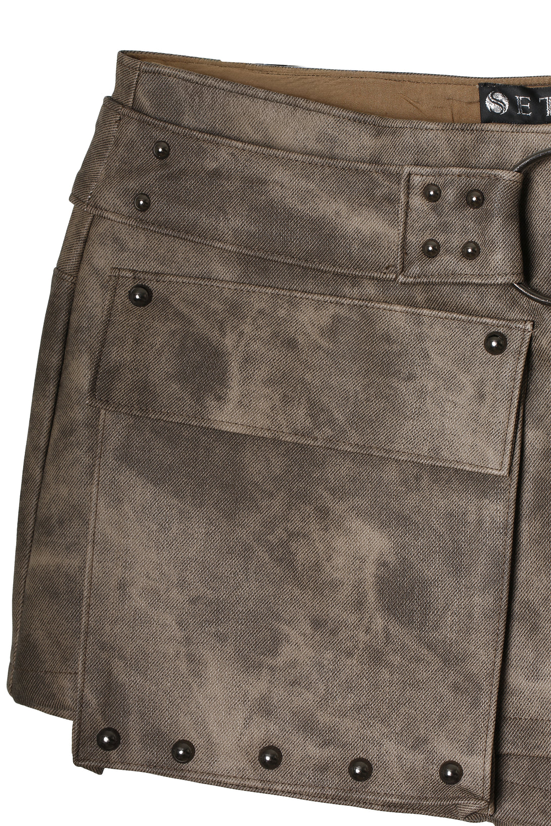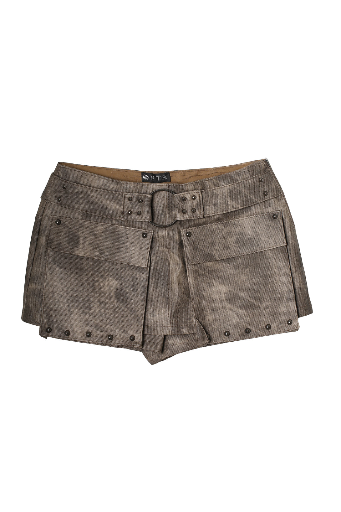 Nuestra Rebel Skirt en marrón encarna la actitud irreverente de SETA. Diseñada con bolsillos utilitarios, cinturón integrado y remaches metálicos, esta mini falda refleja fuerza y rebeldía en un formato urbano y contemporáneo. Su acabado texturizado y tonalidad desgastada evocan un espíritu atrevido, perfecto para quienes buscan destacar con una prenda que combina funcionalidad, carácter y un estilo inconfundible.