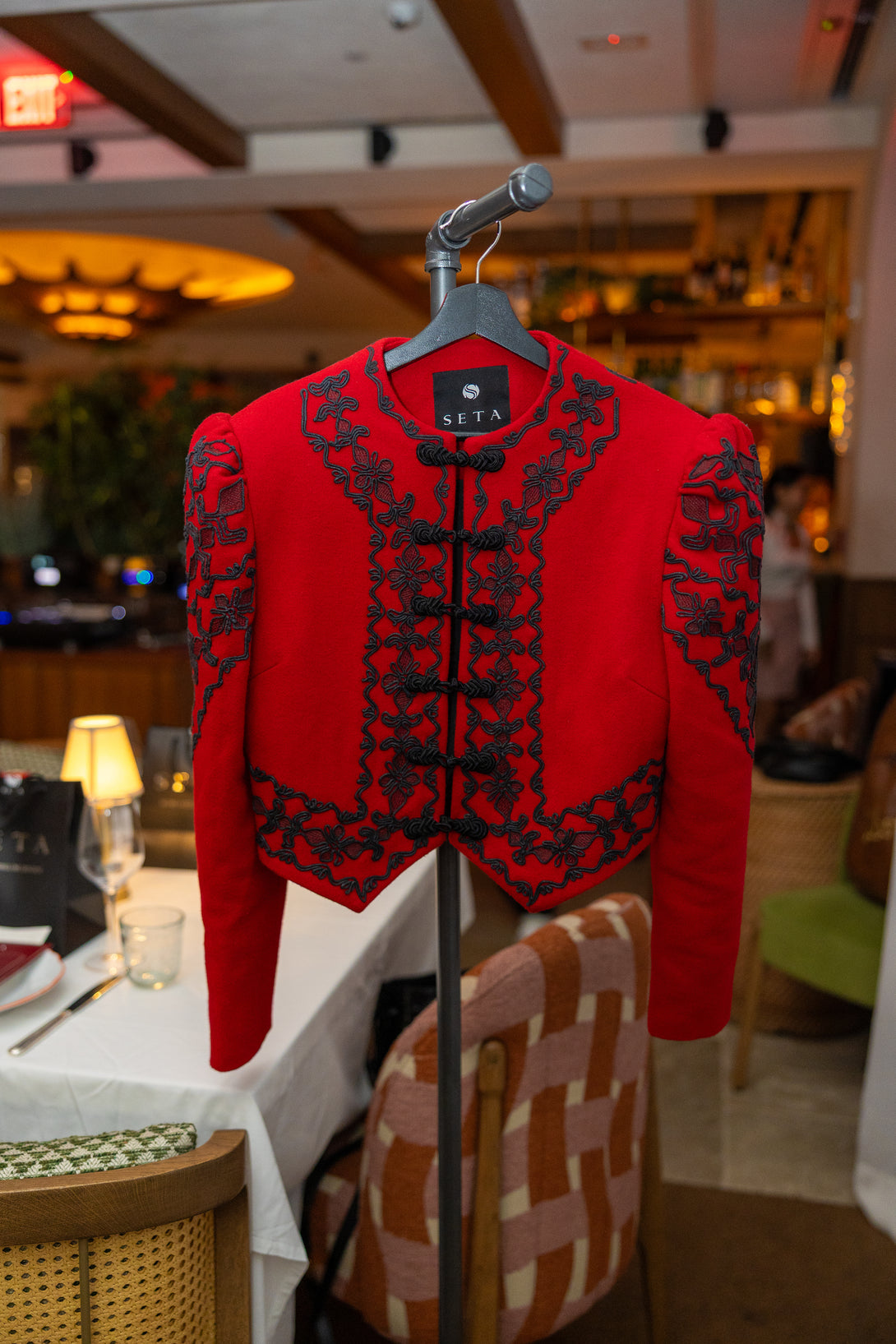 Una pieza exclusiva que reinterpreta la elegancia con un toque de audacia. La Rioja Jacket combina la fuerza del rojo con intrincados bordados negros que realzan su estructura y detalle artesanal. Su silueta marcada y hombros estructurados evocan el lujo contemporáneo de SETA, pensada para mujeres que buscan destacar con sofisticación y carácter.