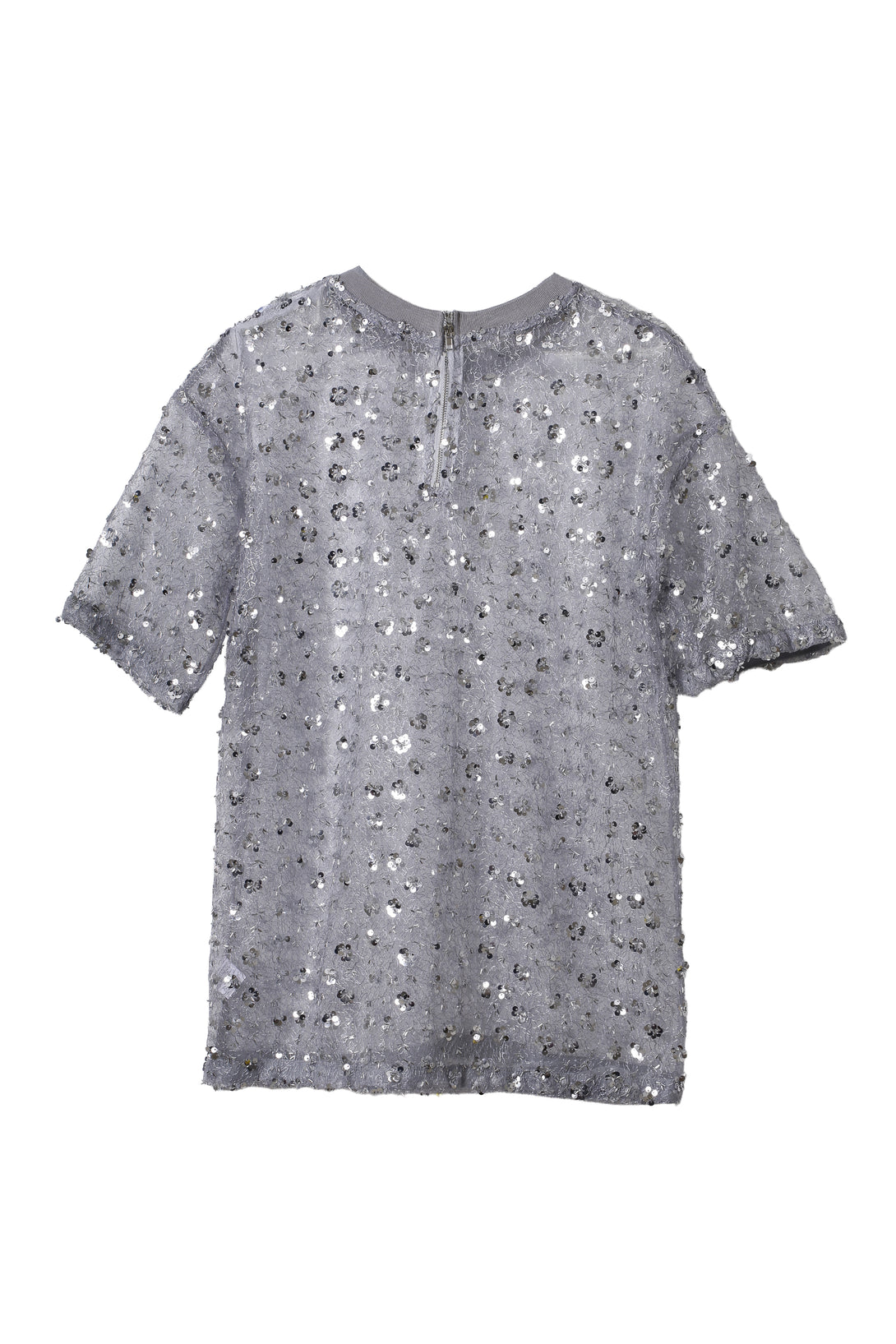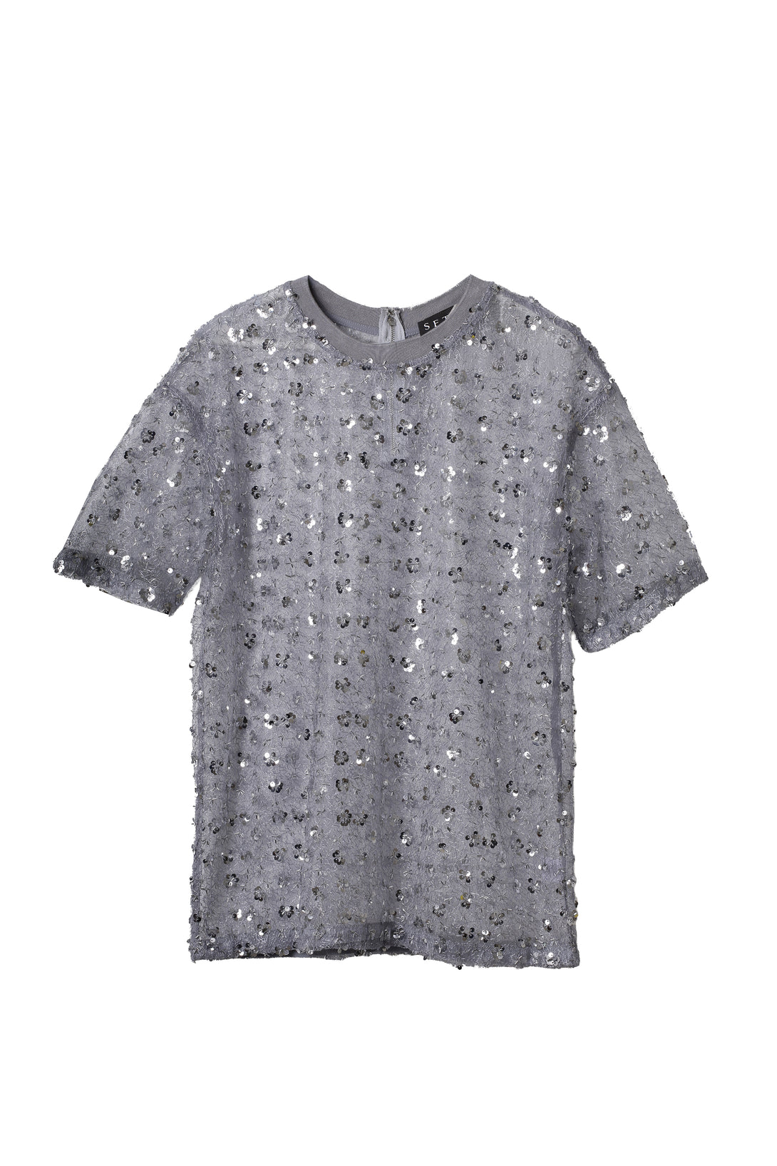 Destellos en todo su esplendor. Esta blusa plateada cubierta en lentejuelas captura la luz con cada movimiento, logrando un efecto luminoso y sofisticado. Su silueta recta y ligera contrasta con la textura rica del tejido, aportando un balance moderno. Perfecta para noches donde el brillo es protagonista, sin perder la esencia elegante de SETA.